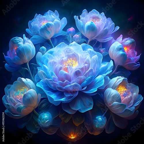 spectral light illuminates transparent bright blue