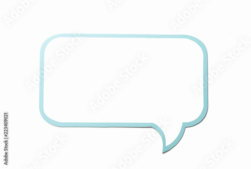 Speech bubble as a cloud with blue border isolated on white background. Copy space