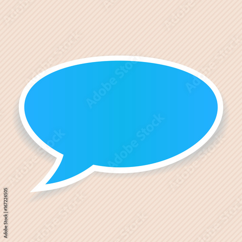 Speech bubble. Blue sticker label with white border. On beige background