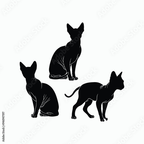 Sphynx Cat Silhouette Vector Set Animals Illustration Template
