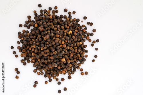spices black pepper whole peas close-up on a white background
