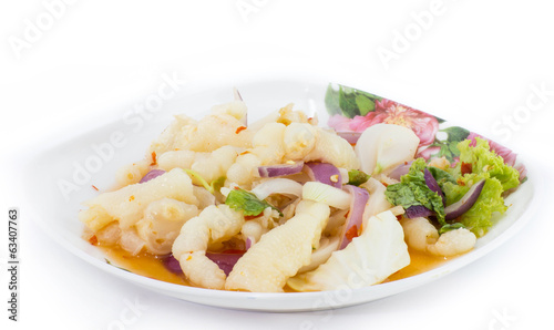 Spicy feet chicken salad on white background