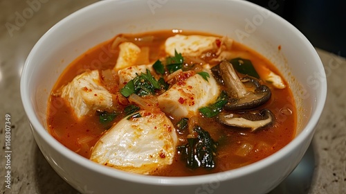 Spicy Fish Stew With Mushrooms And Vegetables