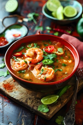 Spicy Shrimp & Tortilla Soup with Lime & Cilantro