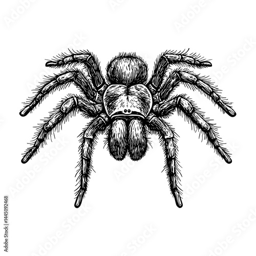 Spider: A meticulously detailed, artistic black-and-white illustration of a spider, showcasing its intricate body structure and natural texture.