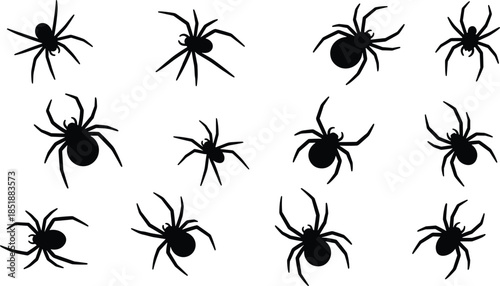 Spider silhouettes set isolated on white background, black arachnid collection illustration for halloween, horror, insect, creepy design vector graphic icon