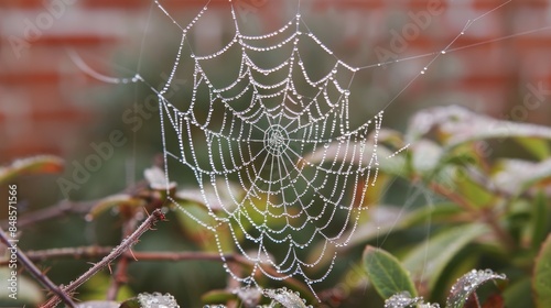 Spider web covered in dew mist