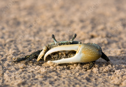 Spined fiddler crab (Uca spinicarpa) in a defensive posture