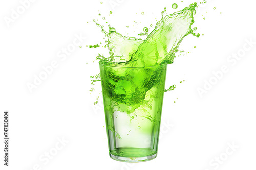 Splash in a glass of green lemonade isolated on PNG Background. Generative Ai.