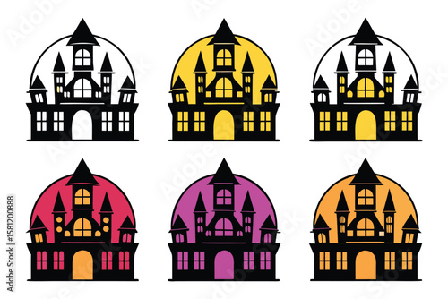 Spooky Halloween Castle Icons Six Colorful Variations for Your Projects