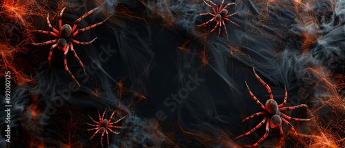 Spooky Halloween flat lay with spiders.