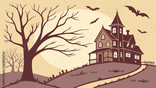 Spooky Haunted Mansion Vector Illustration Halloween Night Scene