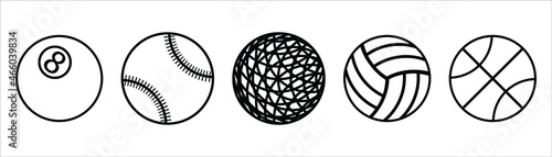 Sport balls set. Ball icons. Balls for Football, Basketball, Tennis, Baseball, Volleyball.