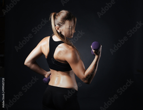 Sporty girl doing studio shot over black background