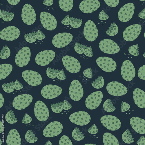 Spotty eggs on dark blue background. Seamless vector pattern.