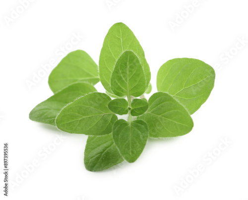 Sprig of fresh green oregano isolated on white