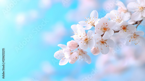 Spring blossoms against a blue sky, nature's beauty, website banner