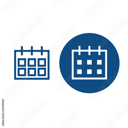 Spring calendar. Option in a circle and without it. Vector blue icons.