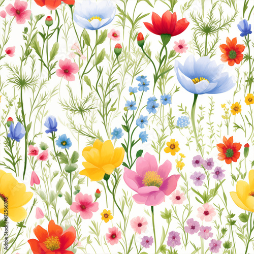 Spring Floral Pattern, Light Blue Background, Colorful Flower Illustration