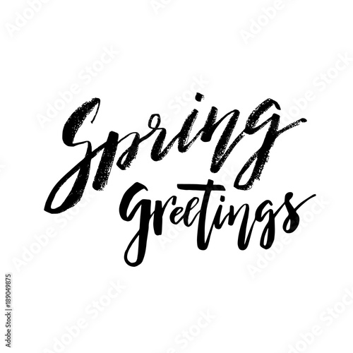Spring Greetings - Hand drawn inspiration quote. Vector typography design element. Spring lettering poster. Good for t-shirts, prints, cards, banners.