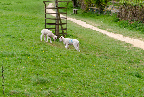 Spring lambs running in a field