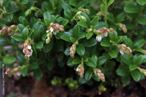 Spring lingonberry blossom. Northern berry