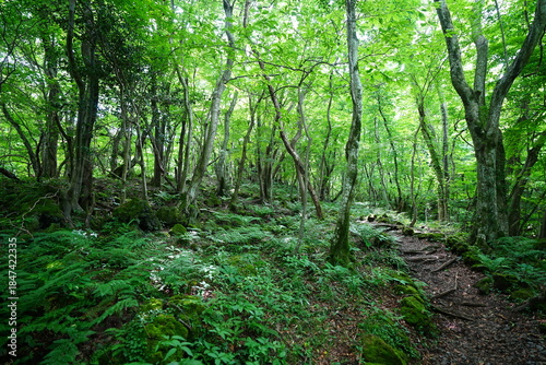 spring path through old wild forest