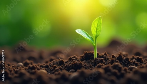Sprouting coffee bean seedlings emerge from earth, soil, greenery