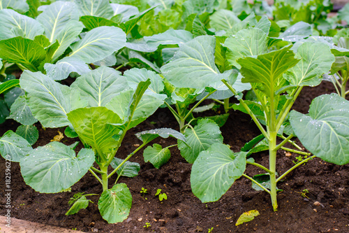 Sprouts cabbage in the garden in the home garden