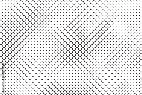 Square dot background. Faded grit noise texture. White and black halftone wallpaper. Retro pixelated backdrop. Anime or manga style comic overlay. Vector graphic design textured template