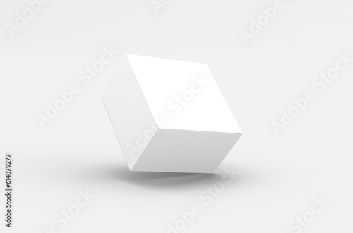 Square product box packaging mockup for brand advertising on a transparent background.