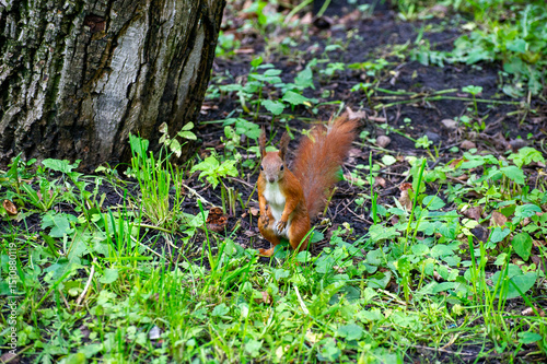 squirrel standing on the grass and watching