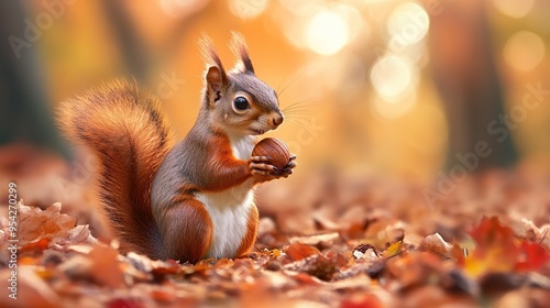 Squirrel with Acorn: A Playful Scene Featuring a Lively Squirrel Holding an Acorn, Capturing the Charm and Natural Behavior of Woodland Creatures.