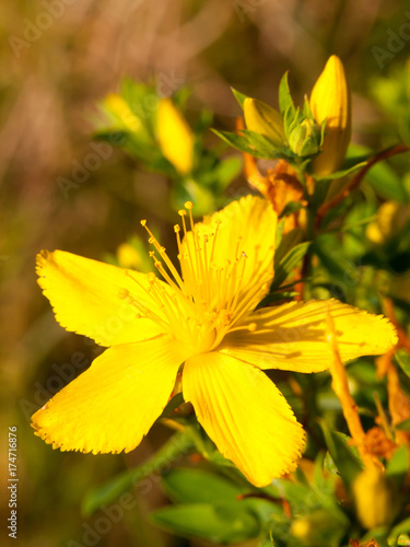 st john's wort yellow wild flower close up outside