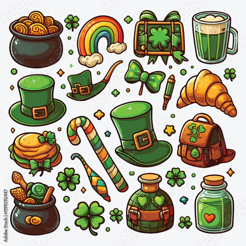 St. Patrick's Day vector design elements set, character leprechaun, gnomes, rainbow stock illustration