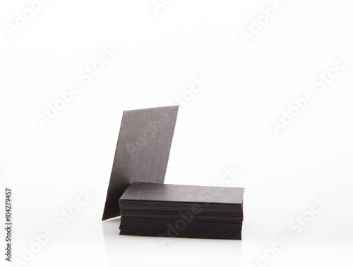 Stack of blank business card on white background.