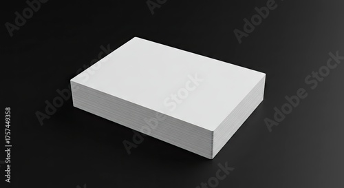 Stack of blank white cards on a solid black surface with smooth slightly rounded edges