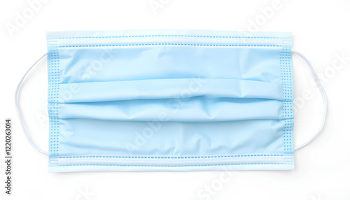 Stack of clean folded blue cotton swabs and a fabric bag isolated on white background