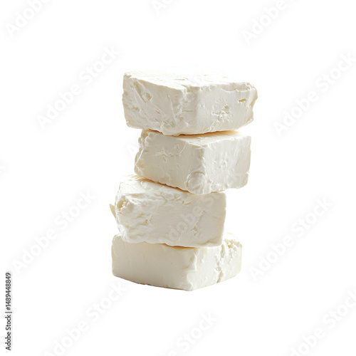 Stack of Cream Cheese Blocks Isolated on Black Background