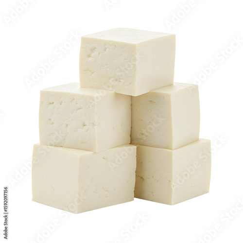 Stack of Firm Tofu Cubes on White Background for Cooking