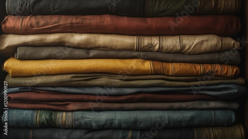 Stack of folded, textured fabric in varied hues.