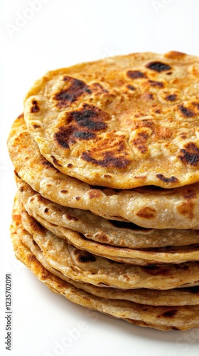 Stack of Freshly Cooked Flatbreads on a White Background