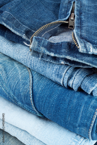 Stack of jeans in different colors