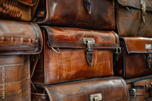 Stack of leather briefcases, professional accessories