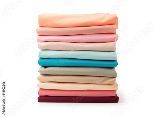 Stack of pale colorful t-shirt isolated on white background
