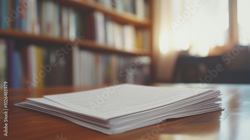 Stack of papers on a wooden table