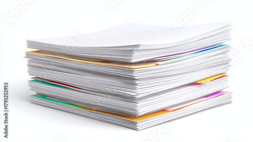 Stack of papers with different colored tabs, organized and ready for use