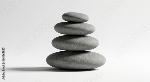 Stack of Smooth Gray Stones on White Background for Zen Decor and Balance