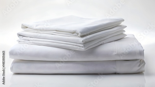stack of white towels on white bed on white background
