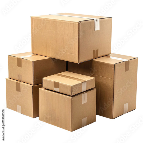 Stacked, sealed, corrugated cardboard boxes on a black background
